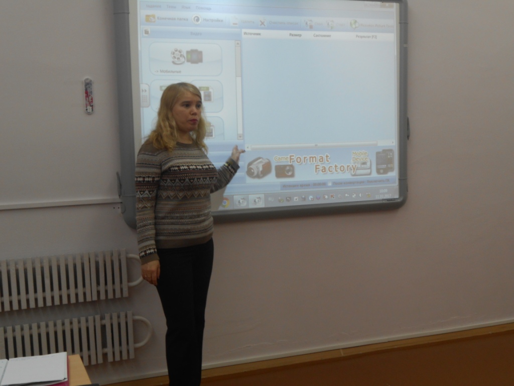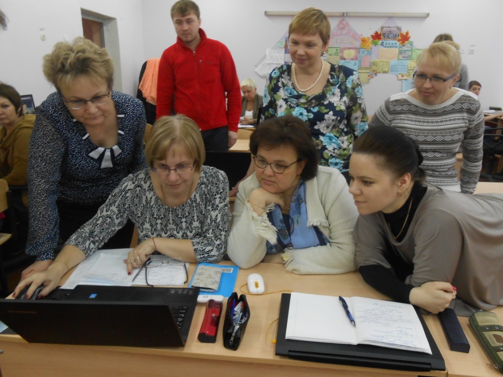 В марте наша школа стала экспериментальной площадкой ИРО Кировской области, на базе школы в течение 2 недель проходят курсы. В рамках курсов 25 педагогов школы учатся работать с современными ИКТ-средствами, осваивают необходимое программное обеспечение для создания методических материалов по работе с интерактивной доской, учатся работать с аудио- и видеофайлами разных форматов, а также обогащают свои знания новыми теоретическими положениями. Галина Федоровна Полушкина - наш верный наставник и научный консультант, учит грамотно оформлять научные статьи, свои электронные работы в программе ActivInspire, технологические карты и методические рекомендации разработанных уроков. |